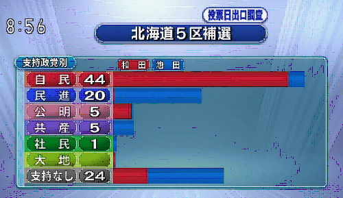 北海道衆院5区補選の出口調査によると支持政党の割合は、自民・公明が49%、民進・共産・社民が26%である。従来だったら無風選挙だが、野党が結集できたことにより接戦に持ち込んだ。「野党結集vs自民党」という分かりやすい対決構図を描くことができ、SEALDsや安保関連法に反対するママの会など多様な層が政治に参加した。野党結集に共産党が入ると民進党支持の保守層が離れるという意見があったが、選挙結果をみると支持離れは起きていない。