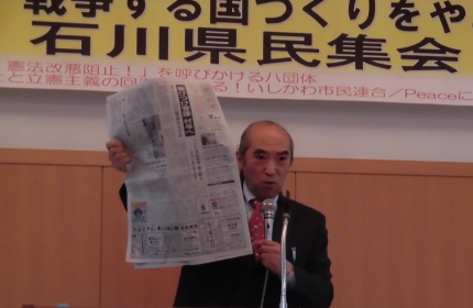 戦争をさせない石川の会も参加している「戦争法廃止! 憲法改悪阻止!」を呼びかける八団体が主催し、11月3日、金沢歌劇座大集会室で開かれた「九条を守り、戦争する国づくりをやめさせよう!」石川県民集会における北村肇さん(「週刊金曜日」発行人)の講演要録を紹介します。